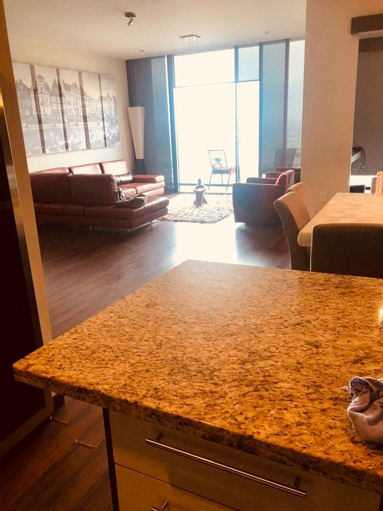 Departamento en Renta en la Torre Cenit. 2 recamaras (Con vestidor cada una) Pantalla de 60” 2 baños completos y 1 medio baño Estancia (también con pantalla *** En total tiene 3 pantallas Lavadora y secadora, Horno refrigerador micro hondas 2 estacionamientos Bodega Mantenimiento incluido Totalmente amueblado Cuenta con una unidad paquete para el clima (Frío/calor) De amenidades: Cuenta con alberca Terraza con vista Gimnasio Sala de Juntas Lobby