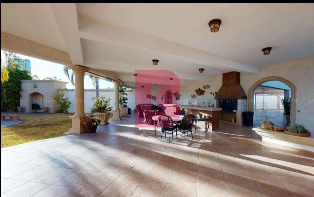 • Facilidad para estacionarse • Garaje • Jardín • Parrilla • Patio • Riego por aspersión • Terraza • Aire acondicionado • Alarma • Bodega • Calefacción · Circuito cerrado • Cocina equipada · Cocina integral · Cuarto de servicio • Fraccionamiento privado Distribución: Planta baja: - Recibidor - Área social: - Bar - Cine - 2 medios baños - Oficina Planta baja acceso de servicio: - Lavandería - 2 cuartos de Servicio con baño completo - 2 bodegas para almacenamiento. Planta media: -Sala y comedor -Cocina con comedor -Terraza -Alberca techada con bar y terraza -Baño completo y clóset -Bodega de blancos Planta alta exterior: - Jardín - Área de juego infantiles - Terraza con asador - Un baño completo y medio baño - Cochera techada para 8 automóviles - Fuente decorativa Equipamiento: - Cisterna - Hidroneumático - Aire acondicionado - Calefacción - Luminarias - Carpintería encino - Muebles de baño de encino y granito - Cocina de encino y granito - Ventanearía marca Pella - Portón eléctrico - Vitrales diseñadosRecámaras: 4